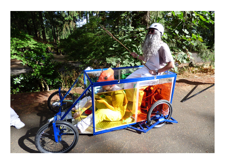 The 2015 PDX Soap Box Derby featured a car built from scratch by the Timbercon staff. Engineer Brendan O’Dea led the team in designing and making The Aqua Brick, which was also known as The Fish Tank among spectators.