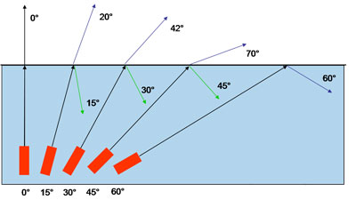 The smallest Angle of Incidence at which total internal Reflection occurs. The angle of incidence in a denser medium, at an Interface between the denser and less dense medium, at which the Light is refracted along the interface. When the critical angle is exceeded, the light is completely reflected back into the denser medium.