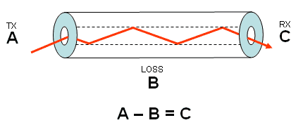 The amount of Optical Power lost as Light is transmitted through fiber, splices, couples and other optical devices. This Loss is relative to the Transmitter output power and affects the required receiver input power.