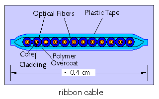 A Cable that incorporates multiple fibers, jacketed side by side in a ribbon-like form (i.e., with parallel elements); can consist of many conductors (copper or fiber) that are embedded in a plastic material in parallel.